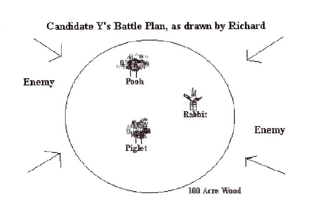 Sheila and her dog society corrupt the mind, according to "bit". Candidate Y will draw lots of arrows and draw lots of maps and be really professional about it. He would arrange a duel at dawn with Sheila and her dog soc., with custard pies. There is a strong possibility that water pistols may enter into it. Candidate Y is "Deadly" with a water pistol.